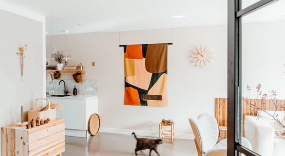 With a painting rail and the right accessories, you can hang a tapestry without drilling while maintaining flexibility. This allows you to easily move or adjust your wall decoration. Wall hangings with a tunnel on the back can be safely hung using a wooden stick, curtain rod or aluminum batten in combination with our hanging systems.